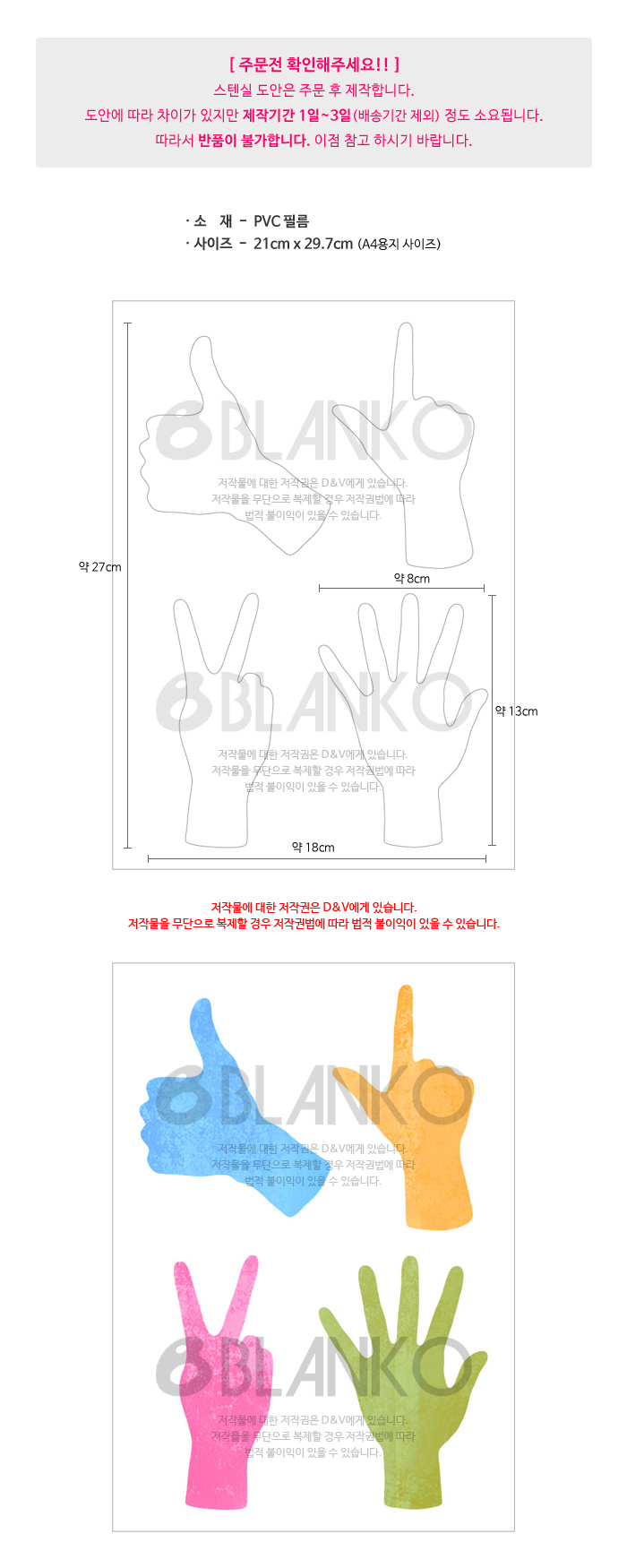 | 품명 및 모델명 | [스텐실_505] 손가락모양 모음 | 소재 | PVC 필름 |