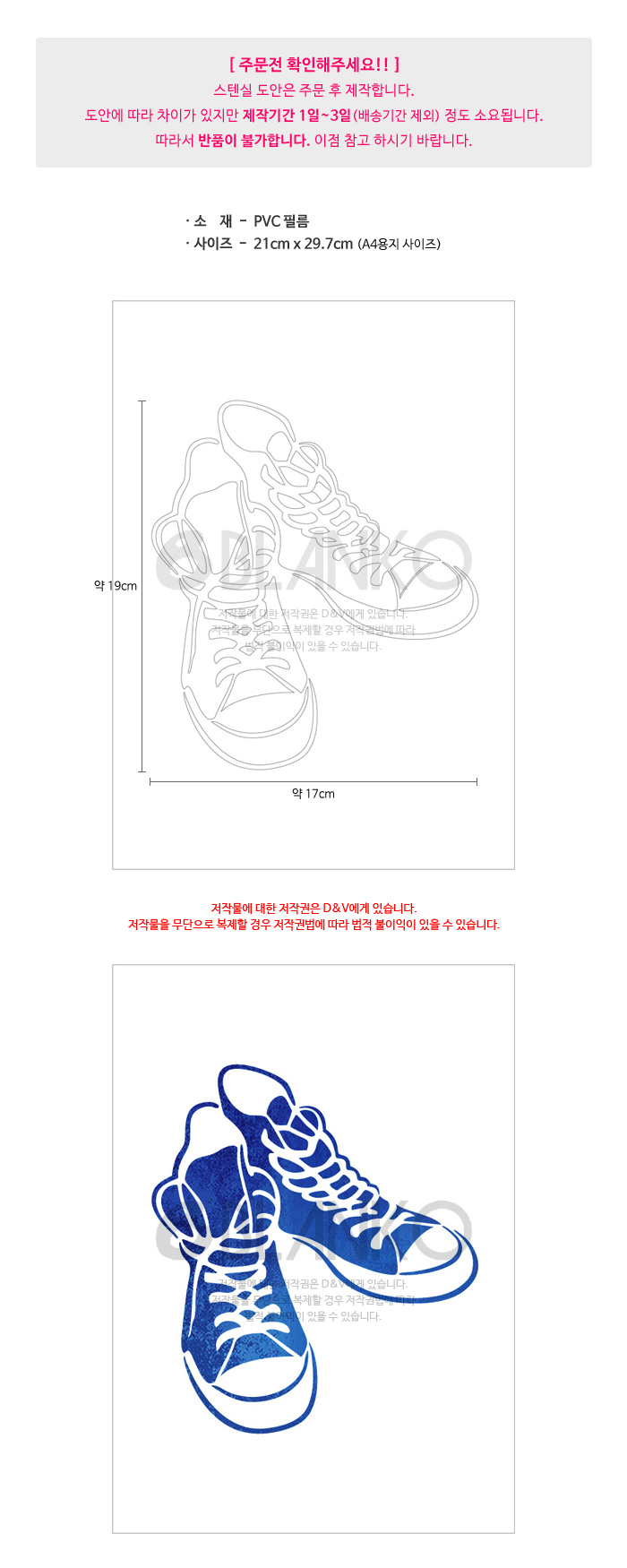 | 품명 및 모델명 | [스텐실_800] 운동화 | 소재 | PVC 필름 |