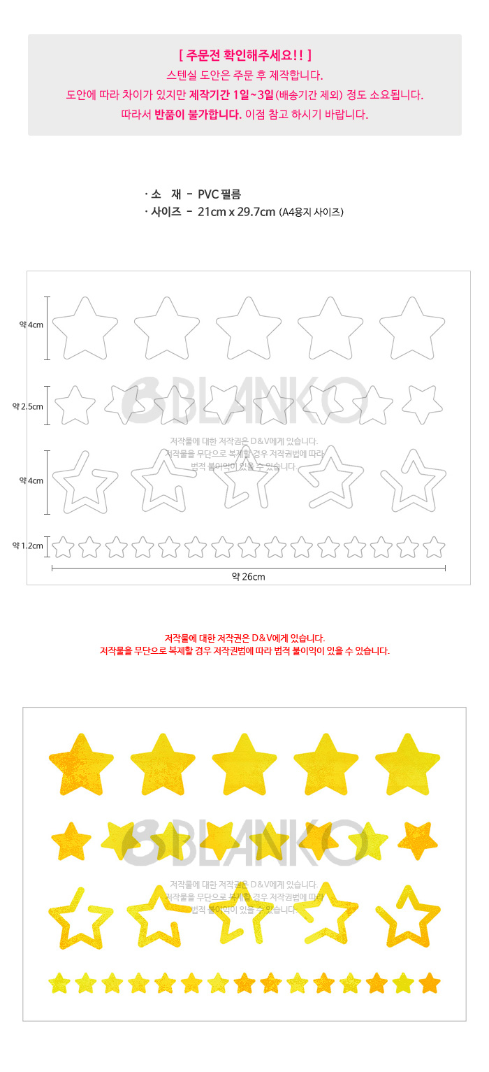 | 품명 및 모델명 | [스텐실_900] 별 템플릿 | 소재 | PVC 필름 |